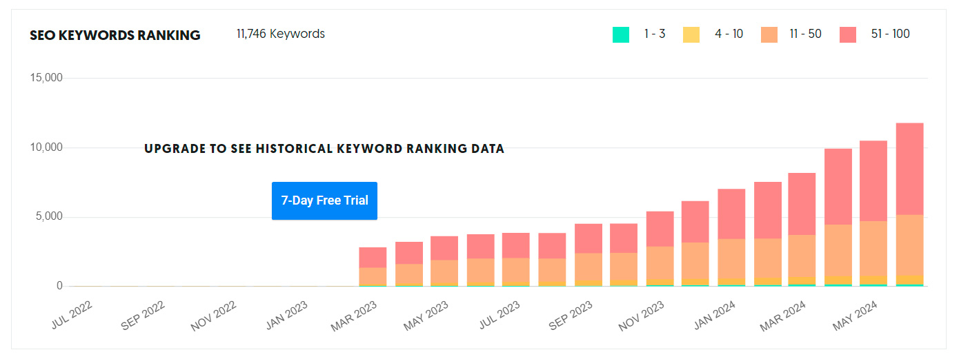 - Melhoria no ranking de palavras-chave: A empresa passou de menos de 100 palavras-chave nas buscas orgânicas para mais de 11.500, aumentando a exposição da marca.