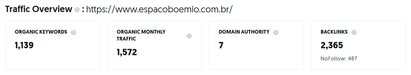 Ao optar pela nossa assinatura de backlinks Completo, o Espaço Boêmio passou a contar com uma quantidade boa de links de qualidade e frequência mensal.