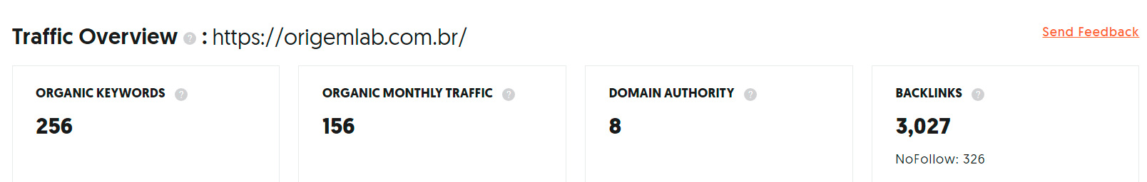 Um site com quase nenhuma visita orgânica e nenhum ranqueamento em qualquer palavra-chave, teve uma melhoria expressiva e constante, como você pode acompanhar nestes relatórios. Por isso indicamos sempre a recorrência e a diversificação de backlinks direcionados para um site! origemlab.com.br