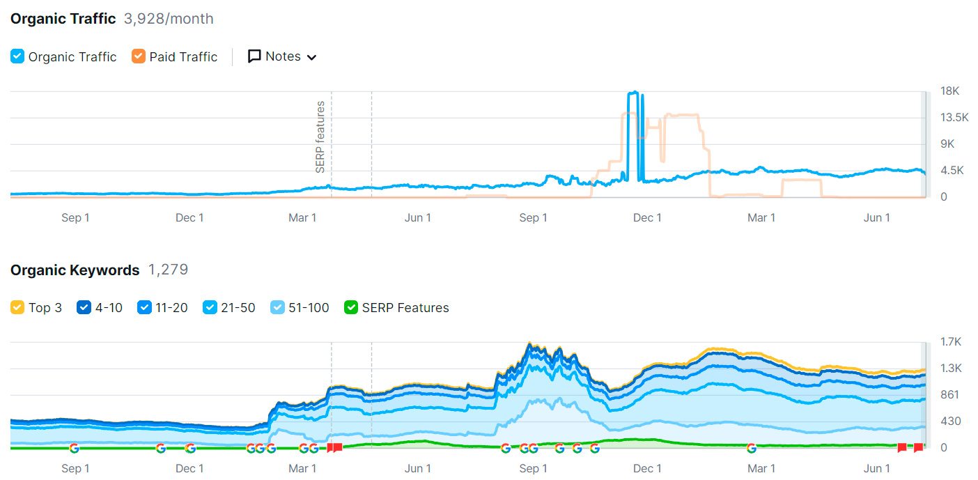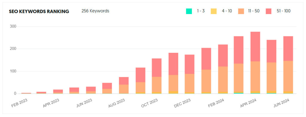 - Aumento no ranking de palavras-chave: A empresa passou de menos de 300 palavras-chave nas buscas orgânicas para mais de 1.350, aumentando a exposição da marca.